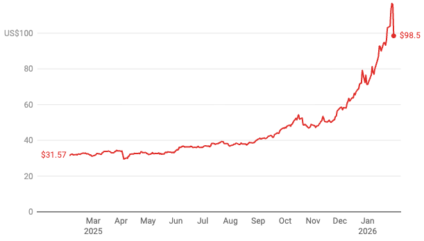 Volatility cuts both ways. From February 2025 up to the recent fall, the price of silver had surged 269%. But even before that fall, silver’s spectacular gain had come with 36% “annualised volatility” (which measures how much a stock price varies over one year). That was nearly double gold’s 20% volatility over the same period.