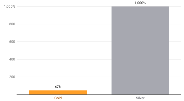 Yet despite attracting slightly lower total investment overall at A$104 million, silver trading activity exploded by far more: it’s been 1,000% higher than the year before.